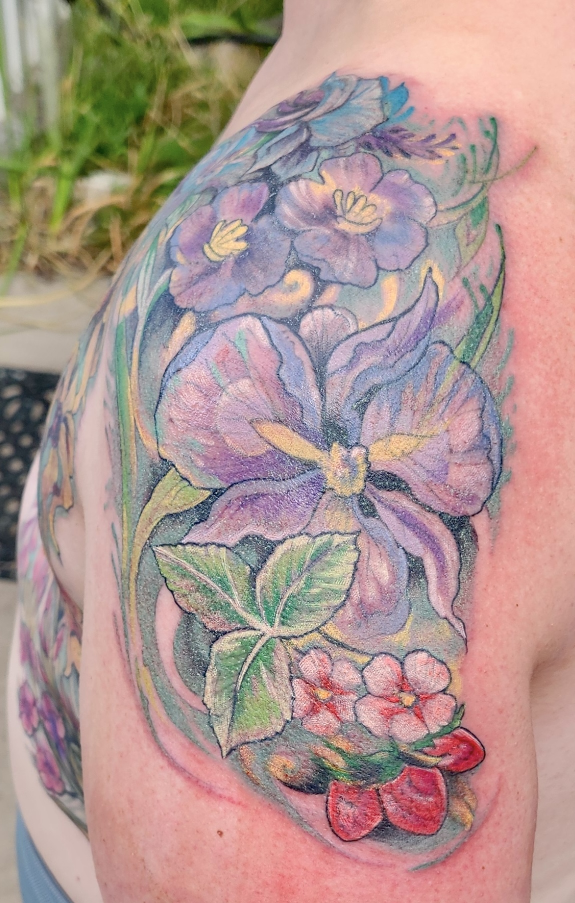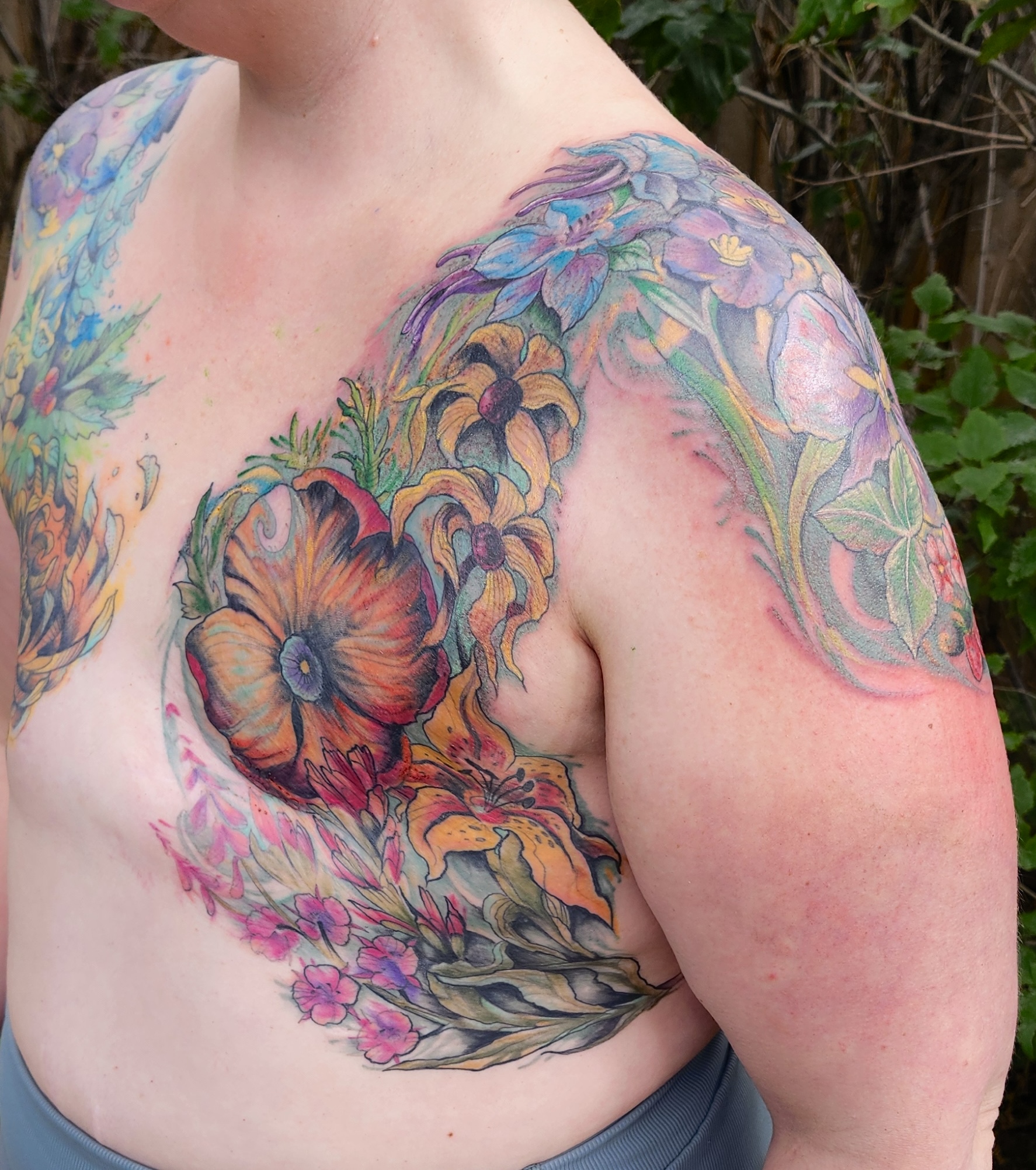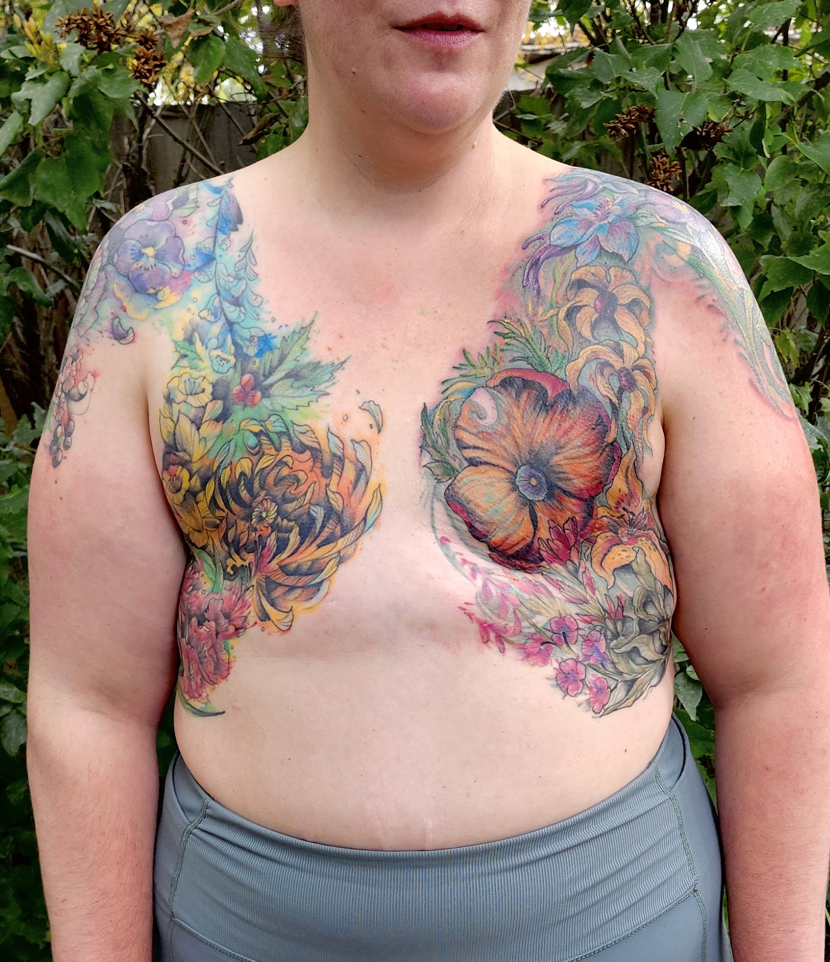 Finished this bilateral mastectomy garden for Robyn over the summer with wild flowers balancing light + dark natural duality and honoring the women in her family. WHAT A STORY! One of those that deserves total illumination for what she went through to honor this decision and what sort of bullshit she had to push back against. Powerful person, powerful experience to make this happen for her. Thank you! All freehand and patience. She sat like a champion.