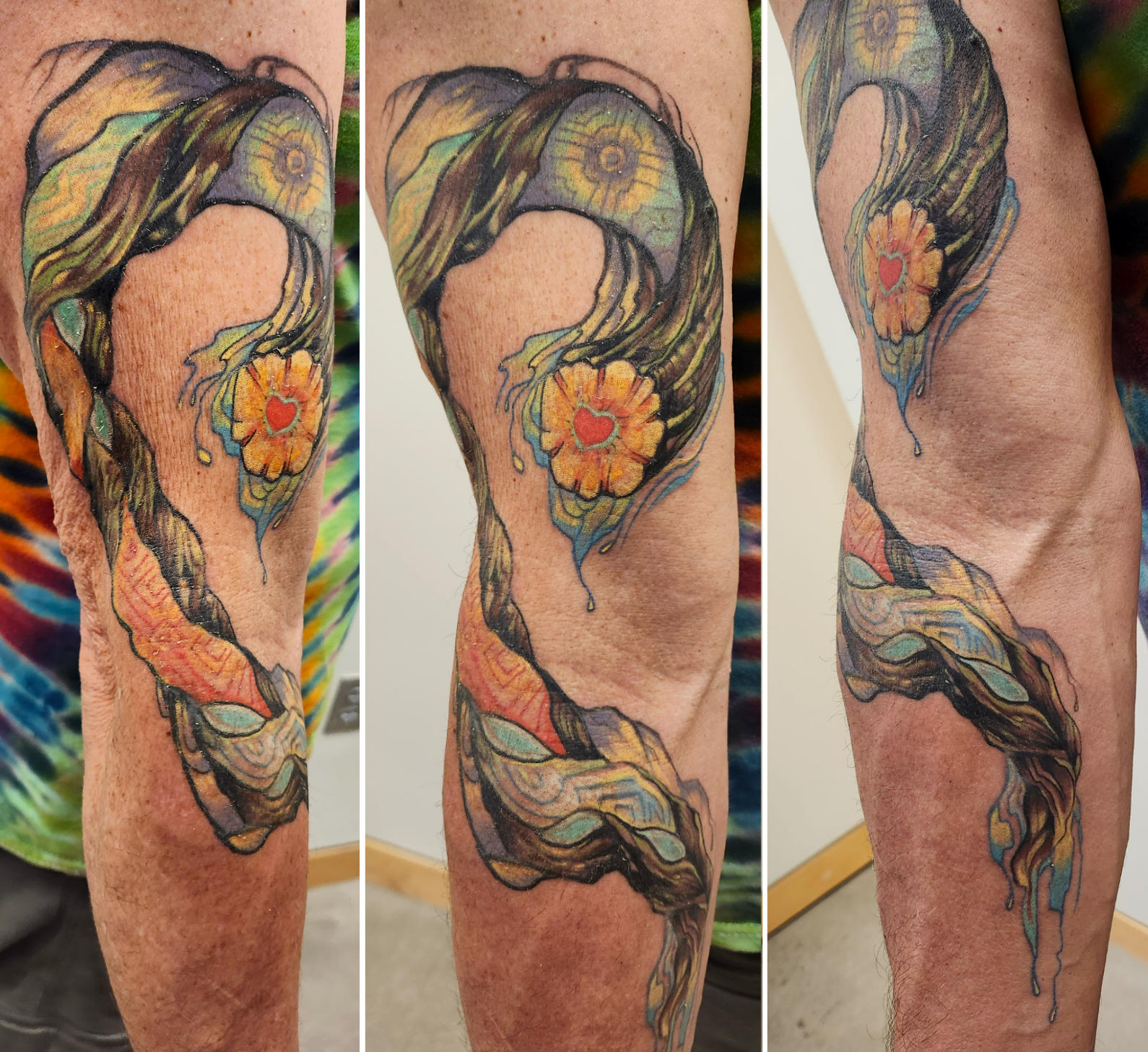 Hayakwaska* vine for Troy: free-handed and one week into healing with room to grow and add. Honoring the massive transformative experience that this client had with consuming the medicine, particularly as a man who served in the military.